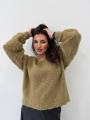 Уютный джемпер с v-вырезом из крупного букле.