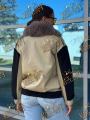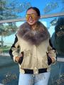 Джинсовка бомбер с натуральным мехом песца, утеплена синтепоном, комбинирована драпом, длина 65 см.