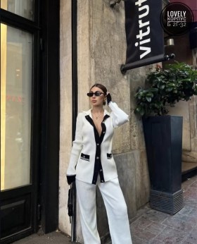 И уютный комплект из свитера с пуговица штанишки на удобных завязках, который хорошо тянется!.