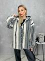 Куртки-рубашка утолщенного топа в стиле ретро,свободной с длинными рукавами и капюшоном из искусственной овечьей шерсти, плотный и теплый верх.