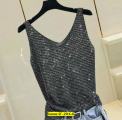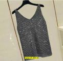 Качество люкс модная женская свободная короткая летняя женская рубашка без рукавов из ледяного шелка с v-образным вырезом, топ.