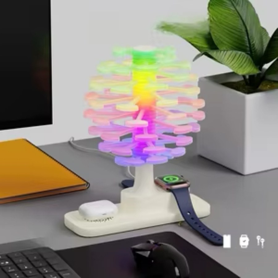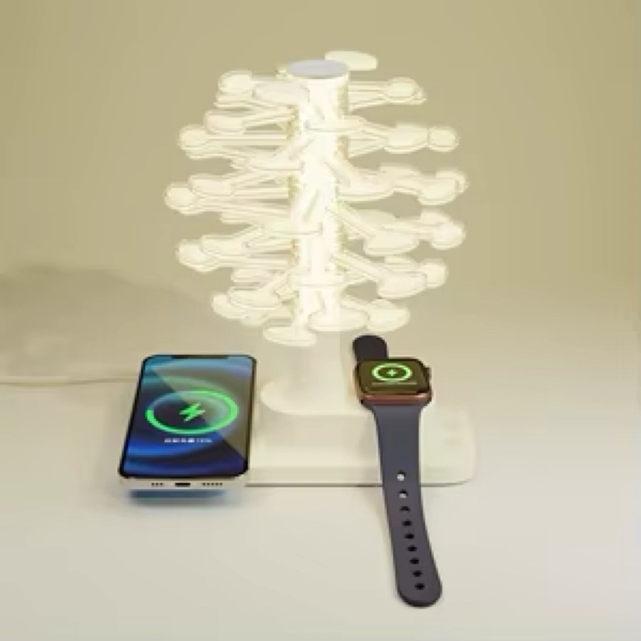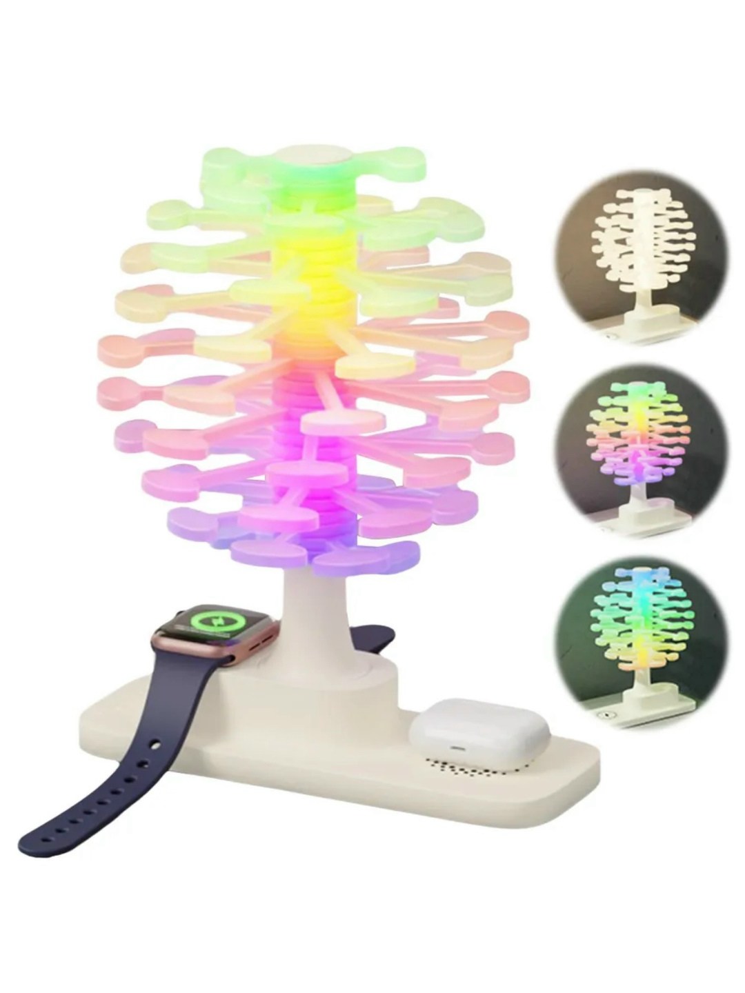 3d спиральная настольная цветная светодиодная лампа в форме дерева с беспроводным зарядным устройством мощностью 15 вт для часов, новинка, радужная лампа, ночник, орнамент.