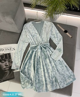 Велюровое платье в жемчужной россыпи с облегающим лифом на запах позволит вам блистать в этом великолепии, подчеркивая вашу неповторимую харизму и элегантный стиль.