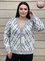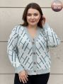 Легкий силуэт кофты деликатно подчеркивает достоинства фигуры, придавая ей изящество и грациозность Пуговицы, словно маленькие жемчужины, рассыпавшиеся по полотну тканьи, добавляют образу нотку романтичности и загадочности.