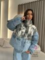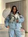 New джинсовая куртка-пуховик в корейском стиле с принтом это яркий акцент для шикарные ветровкиа Спортивные полоски и необычный дизайн сделают ваш образ запоминающимся и неповторимым.