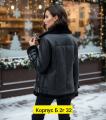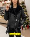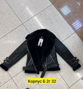 Куртка косушка на меху с двойными патами на рукавах, косыми карманами на молниях, поясом на пряжке и с кокеткой и рельефами на спинке.