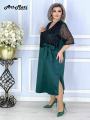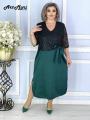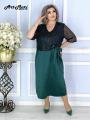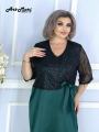 Ткань атлас со вставкой из сетки украшенной пайетками.