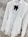 Рубашка белая удлиненная брошь пояс.
