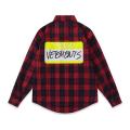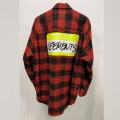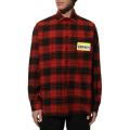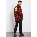 Модель пошита из фланели Этот тплый, прочный и приятный на ощупь материал подходит для ношения в любую погоду, а особенно актуальна такая вещь в межсезонье и в зимний период Рубашка красного цвета в чрную клетку дополнена яркими принтами с названием марки.
