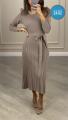 Вязаное платье с поясом и гофрированным низом.