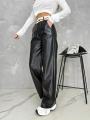 Кожа брюки Материал хорошо тянуться.