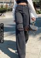 Трендовая модель джинсов палаццо модель трубы с рванкой, высокая посадка для самых стильных красоток.