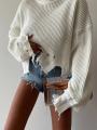 Вязаные рваный свитер в самом популярным оттенке свитер женский oversize модный и удобный вариант для повседневного образа Джемпер вязаный со спущенным плечом отлично впишется в ваш гардероб.