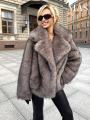 Эта короткая шубка из искусственного меха выполнена в модном силуэте оверсайз (oversize), который подчеркивает индивидуальность.
