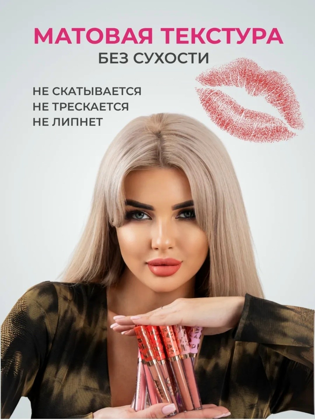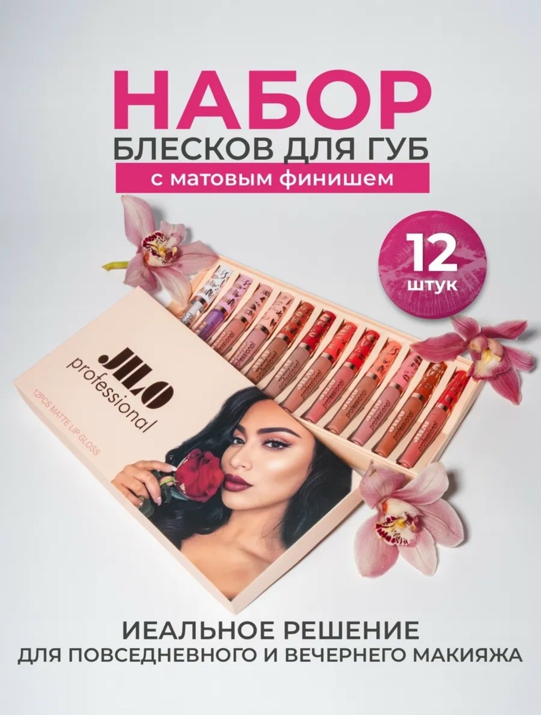 Очень качествонные матовые помады для губ не только красиво ложатся на губы, но и очень стойкие Помада не скатывается, равномерно ложится на губы и смотрится очень эффектно В наборе сразу 12 самых популярных оттенков, которые пригодятся на все случаи жизни Матовые помады не сушат губы, а делают их мягкими и бархатистыми.