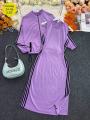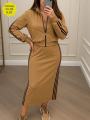 Новинка Безупречный костюм-двойка: платье с трендовыми разрезами удобный пиджак Мягкий трикотаж, шикарная посадка,.