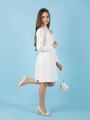 Модель выполнена из тонкий твидовый тканьи с лeгким блеском, внутри полностью хб подклад, не колется.