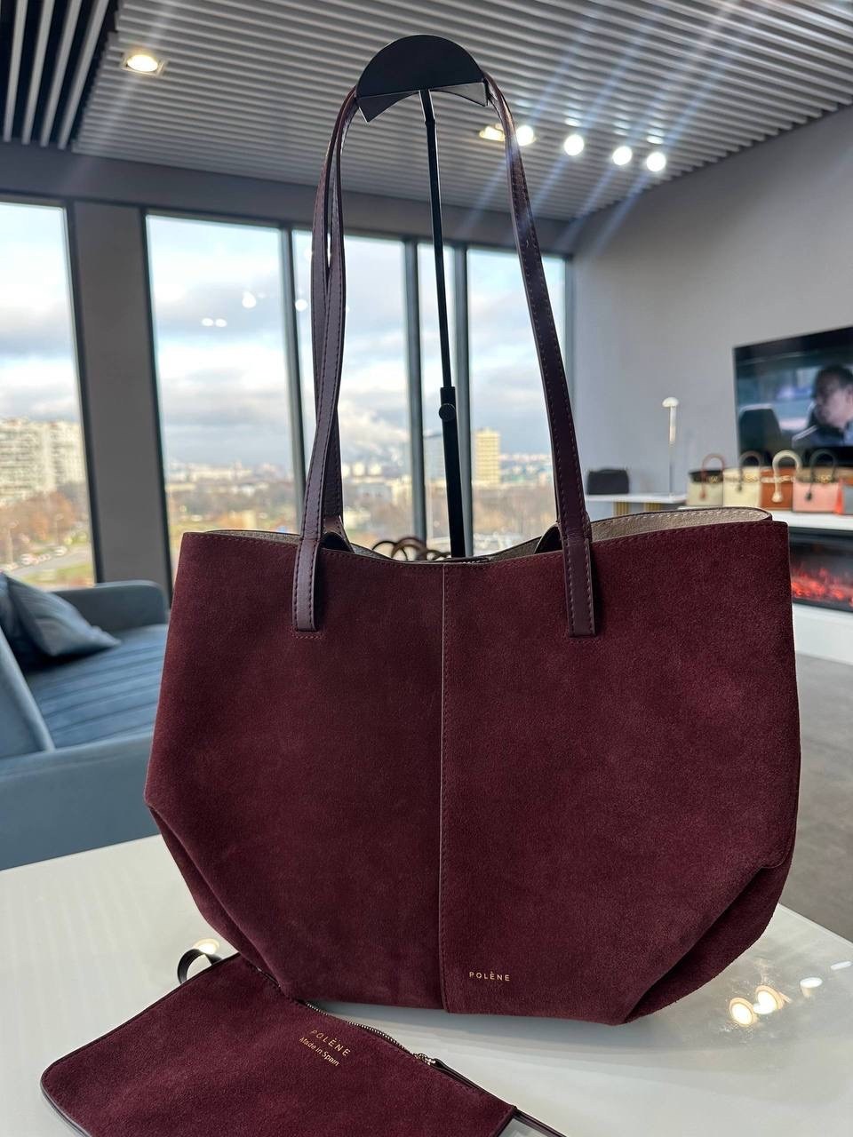 Стильная и вместительная модель из плотной натуральной замши Красивый глубокий синий цвет, аккуратные длинные ручки В комплекте замшевый клатч.