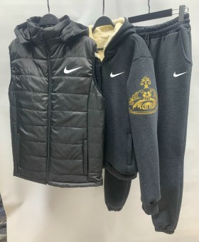 Мужская тплая тройка: спортивный костюм 3-нитка на молнии ( на флисе) жилетка на синтепоне 200г, капюшон отстгивается.