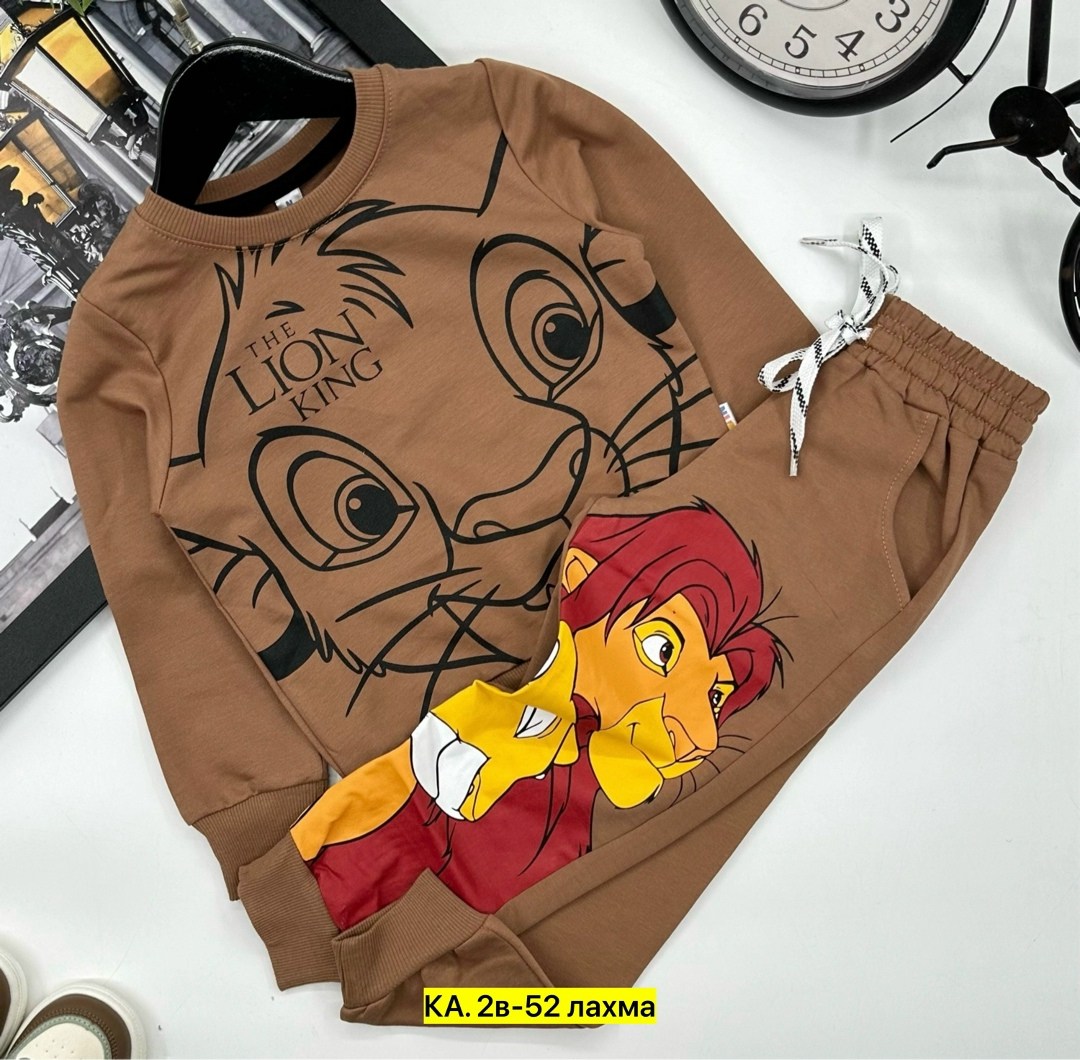 Принт включает изображение льва и текст the lion king Материал, вероятно, мягкий и приятный на ощупь.