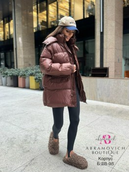 New стильная куртка-пуховик с глянцевым эффектом и капюшоном Модель средней длины с регулируемой кулиской на талии, вместительными накладными карманами и высоким воротником обеспечивает комфорт и защиту от непогоды.