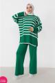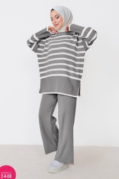 Вязаный костюм с брюками палаццо идеально подчеркнт вашу индивидуальность в любой ситуации Материал мягкий, приятный к телу, хорошо тянется и не сковывает движения, а широкие брюки добавят изюминку в ваш образ Этот костюм подходит для любого сезона вязаный материал согреет вас в холода, а широкие брюки будут выглядеть стильно и современно Однотонный базовый дизайн в полоску и свободный крой делают его универсальным и подходящим для повседневной носки, а также для офисного классического стиля.