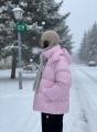 Стильный и тплый пуховик oversize с вертикальными полосками.