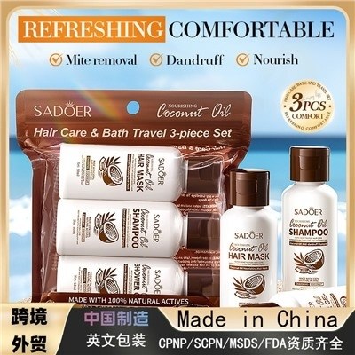 Набор для ухода за волосами с кокосовым маслом включает три предмета и идеально подходит для ванны и путеществий Он мягко удаляет масло, грязь и остатки средств с кожи головы и волос, сохраняя их свежими и нежирными.