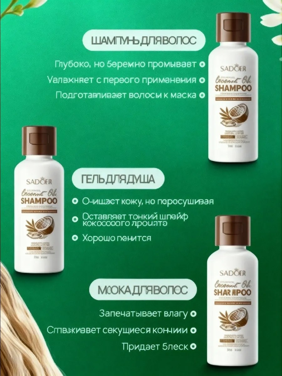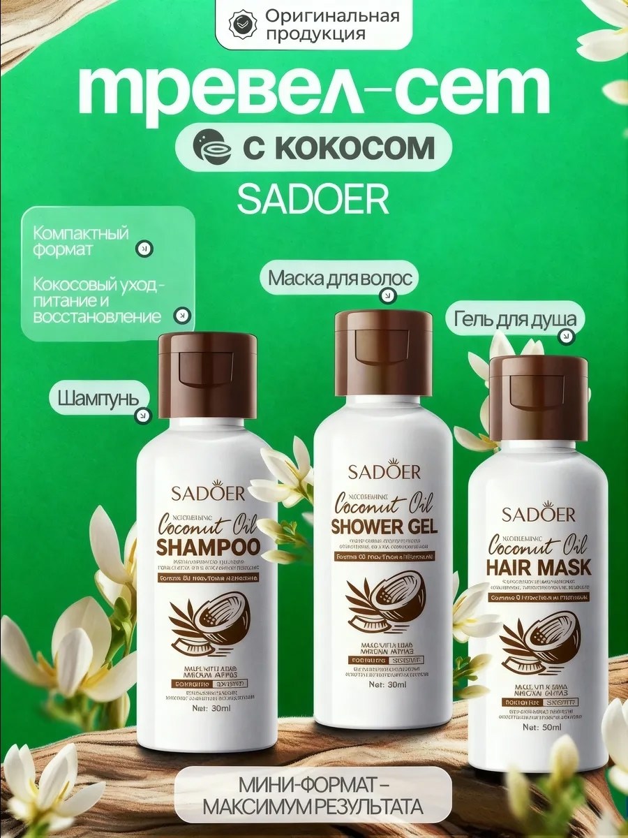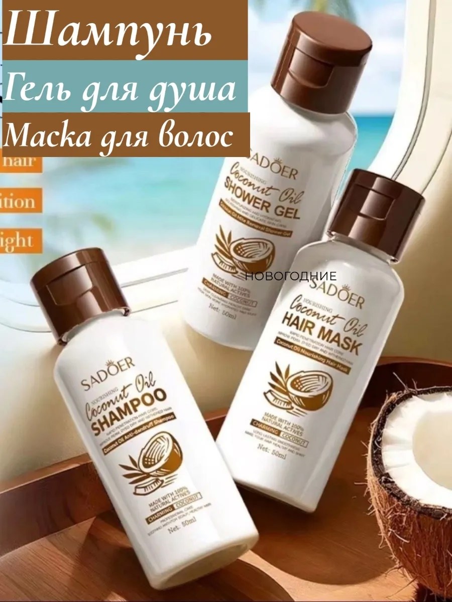 Подходит для всех типов волос, дарит ощущение свежести и легкости, а также оставляет за собой нежный кокосовый аромат, который поднимает настроение на весь день Используйте его регулярно для достижения наилучших результатов и наслаждайтесь красивыми, здоровыми волосами Гель для душа с кокосовым маслом (50 мл) это идеальное средство для ежедневного ухода, которое подарит вашей коже ощущение свежести и комфорта Обогащенный натуральным кокосовым маслом, он мягко очищает, увлажняет и питает кожу, оставляя ее мягкой и гладкой.
