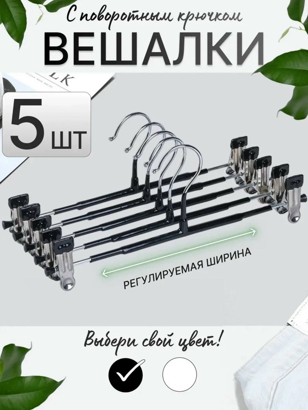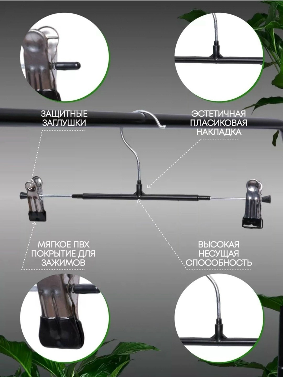 Вешалки с зажимами набор 5 штук предназначены для хранения брюк, юбок, шорт, белья, шарфов и детской одежды Прочные прищепки с силиконовыми вкладками защитит вашу одежду от повреждений так же от скольжения Клипсы передвигаются по перекладине можно использовать для разных размеров.