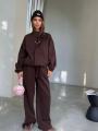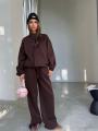 Внизу брюк кулиска, можно носить как палаццо, а можно затянуть и носить как джоггеры.