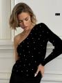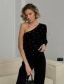 Шикарная кофта на одном плече с суворовском камушки.