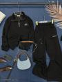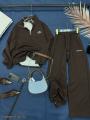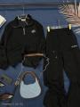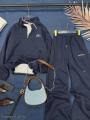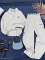 Стильный спортивный костюм с базовым дизайном уже в наличии Брюки палаццо с завышенной талией с карманами на кулиске, а также свитшот поло на кулиске идеальны для повседневного образа Надпись аккуратно вышита Не утеплнный!.