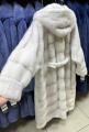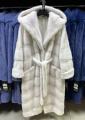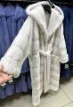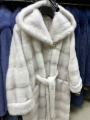 Шубка из меха европейской норки с капюшоном, модель кимоно, цвет колотый лед.
