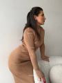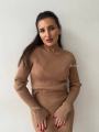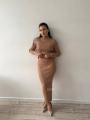 Костюм состоит из укороченного верха и юбка в длине миди.