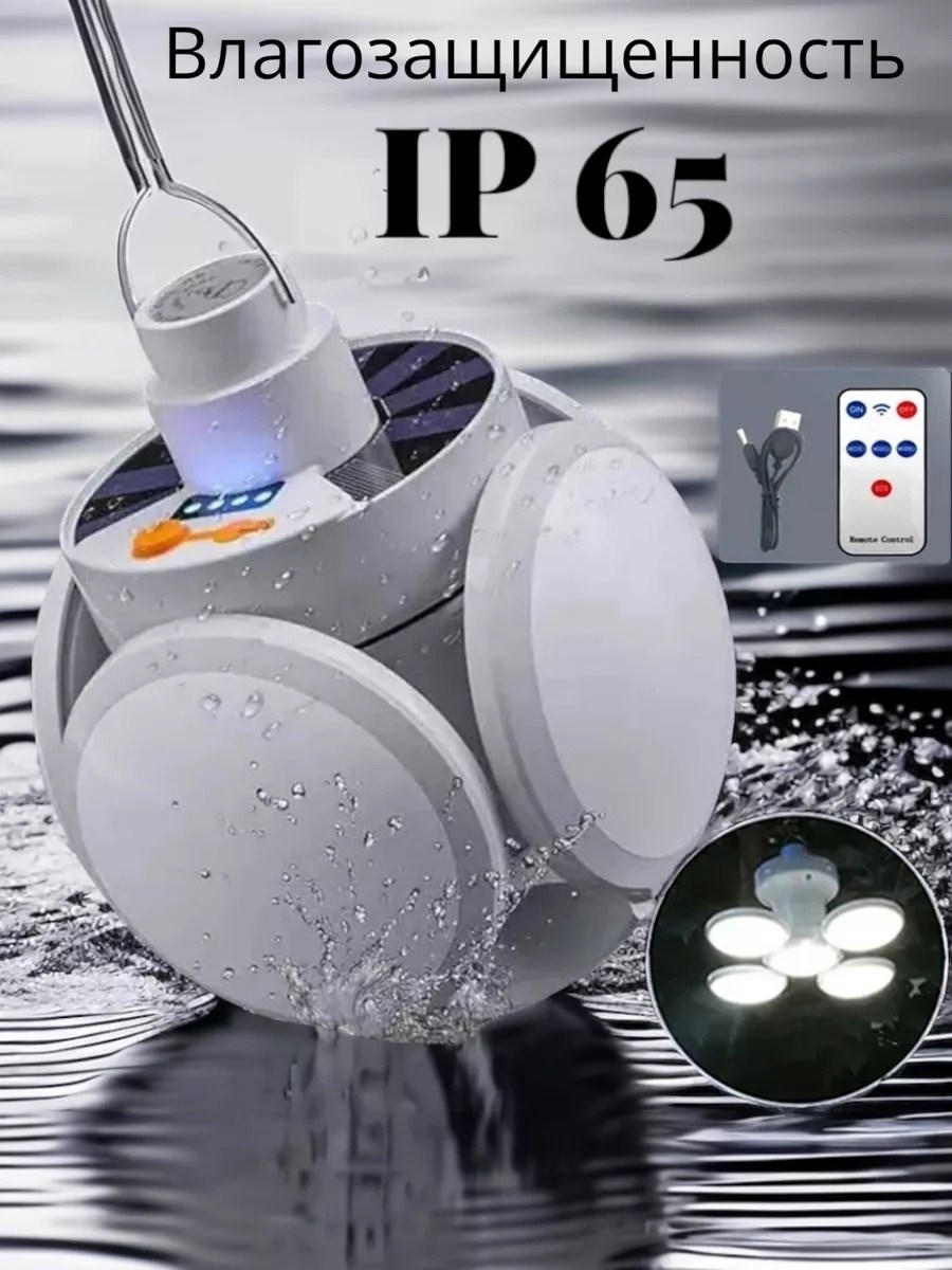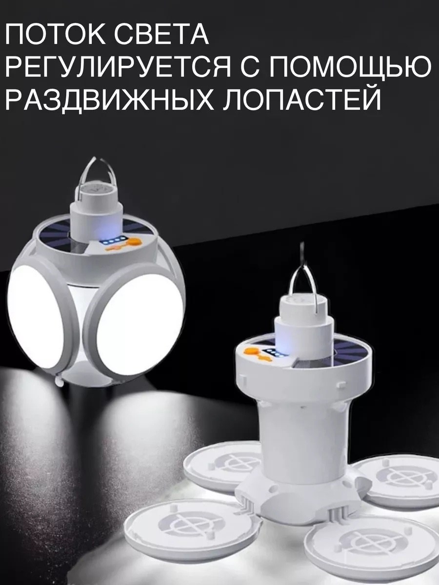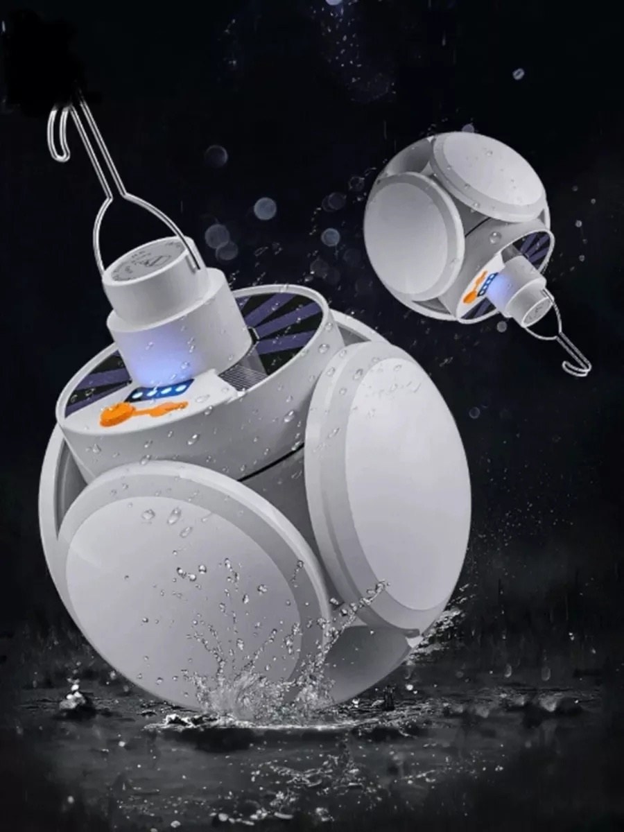 Кемпинговая подвесная лампа - отличный помощник в любых условиях: во дворе, гараже, доме, палатке, беседке и т Д. Яркая светодиодная лампа проста в использовании, заряжается от сети или от встроенной солнечной батареи Отличный подарок любителям отдыха на природе.