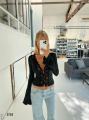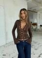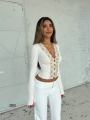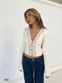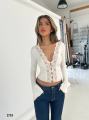 Топ с длинным рукавом, акцентным v-вырезом и фигурным кружевом по центру Идеально сидит, тянется, подходит как для вечерних выходов, так и для стильных дневных образов.