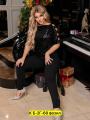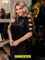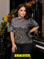 Блузка с короткими рукавами и с блестками спереди.
