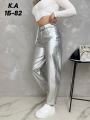 Брюки женские из искусственной кожи классического кроя со стрелками трендового цвета серебристый металлик.