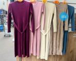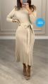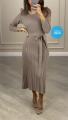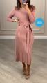 Вязаное платье с поясом и гофрированным низом.
