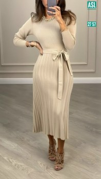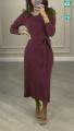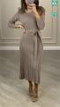 Вязаное платье с поясом и гофрированным низом.