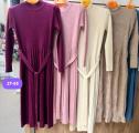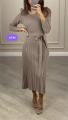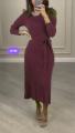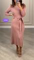Вязаное платье с поясом и гофрированным низом.