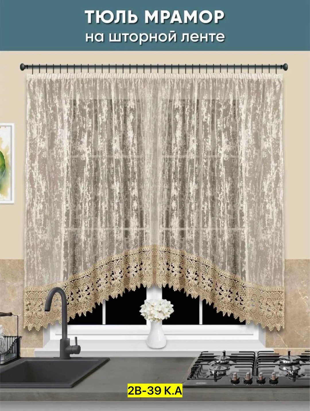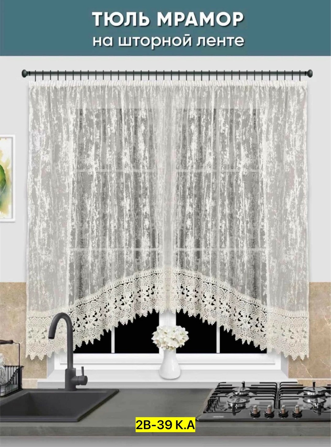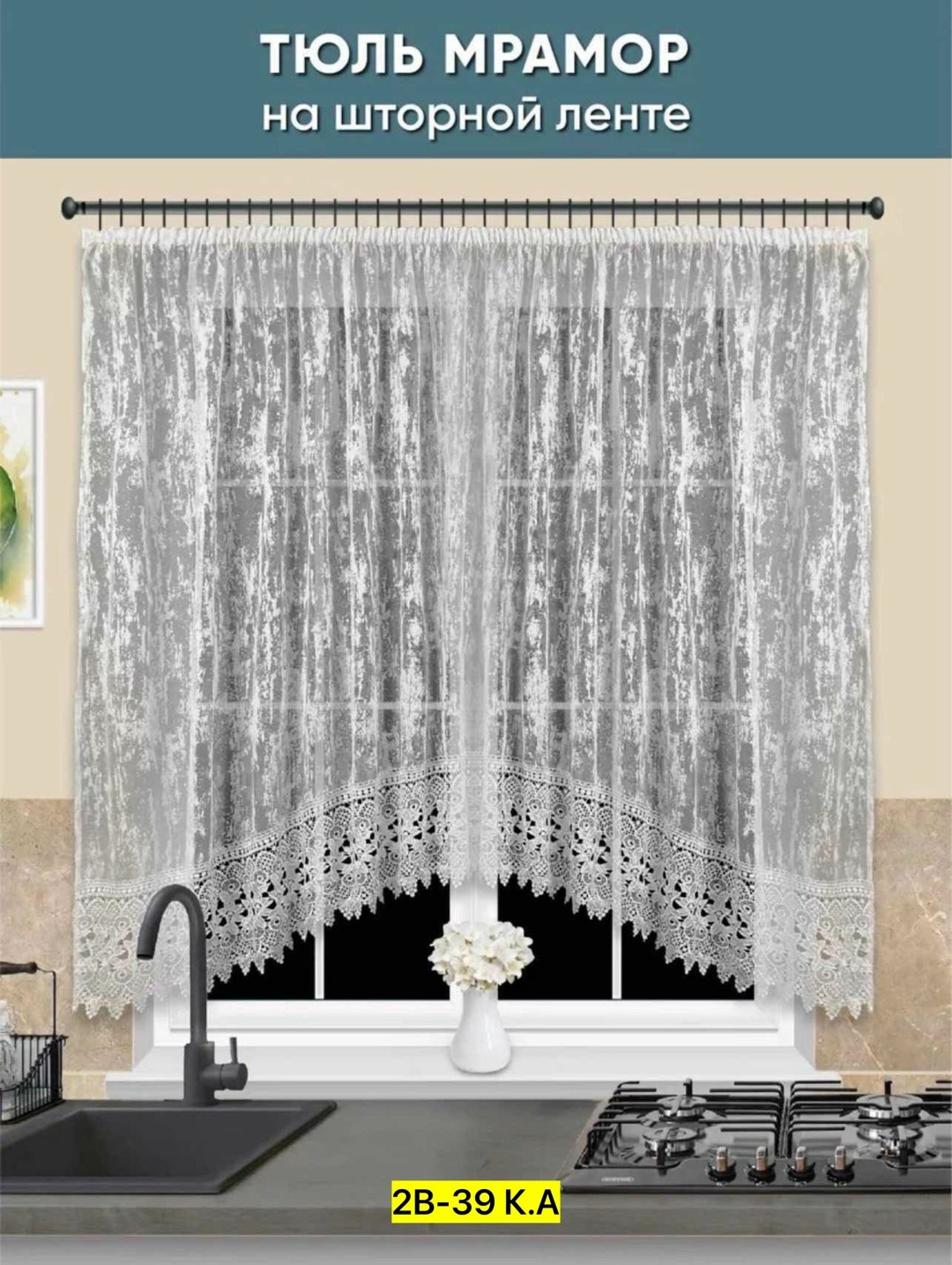 Тюль для кухни мрамор