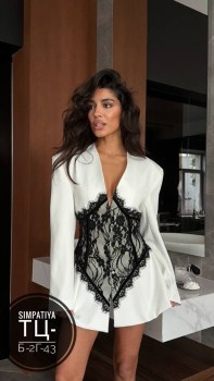 Ультрамодный пиджак-платье с акцентной корсетной кружевной вставкой Идеальная посадка, прямой силуэт и женственный контур делают образ дорогим и выразительным.