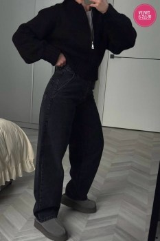 Широкие джинсы из денима создают идеальную линию силуэта и ощущение легкой небрежности.