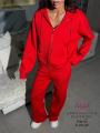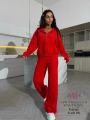 Наш трикотажный костюм с оверсайз худи на молнии и трендовыми широкими брюками это идеальное рещение для комфортных и стильных дней.