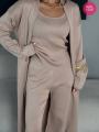 Костюм тройка с майкой, брюками палаццо и кардиганом миди поможет быть вам в тренде Брюки палаццо визуально стройнят ножки, подходят для любой фигуры Идеальны для повседневного образа!.