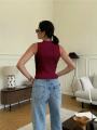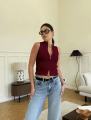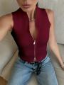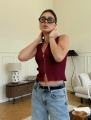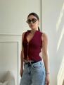 Кроп топ в рубчик под пиджак с горлом на молнии.