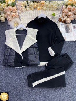 Тплый костюм - тройка, состоит из жилетки, худи и джоггеров.