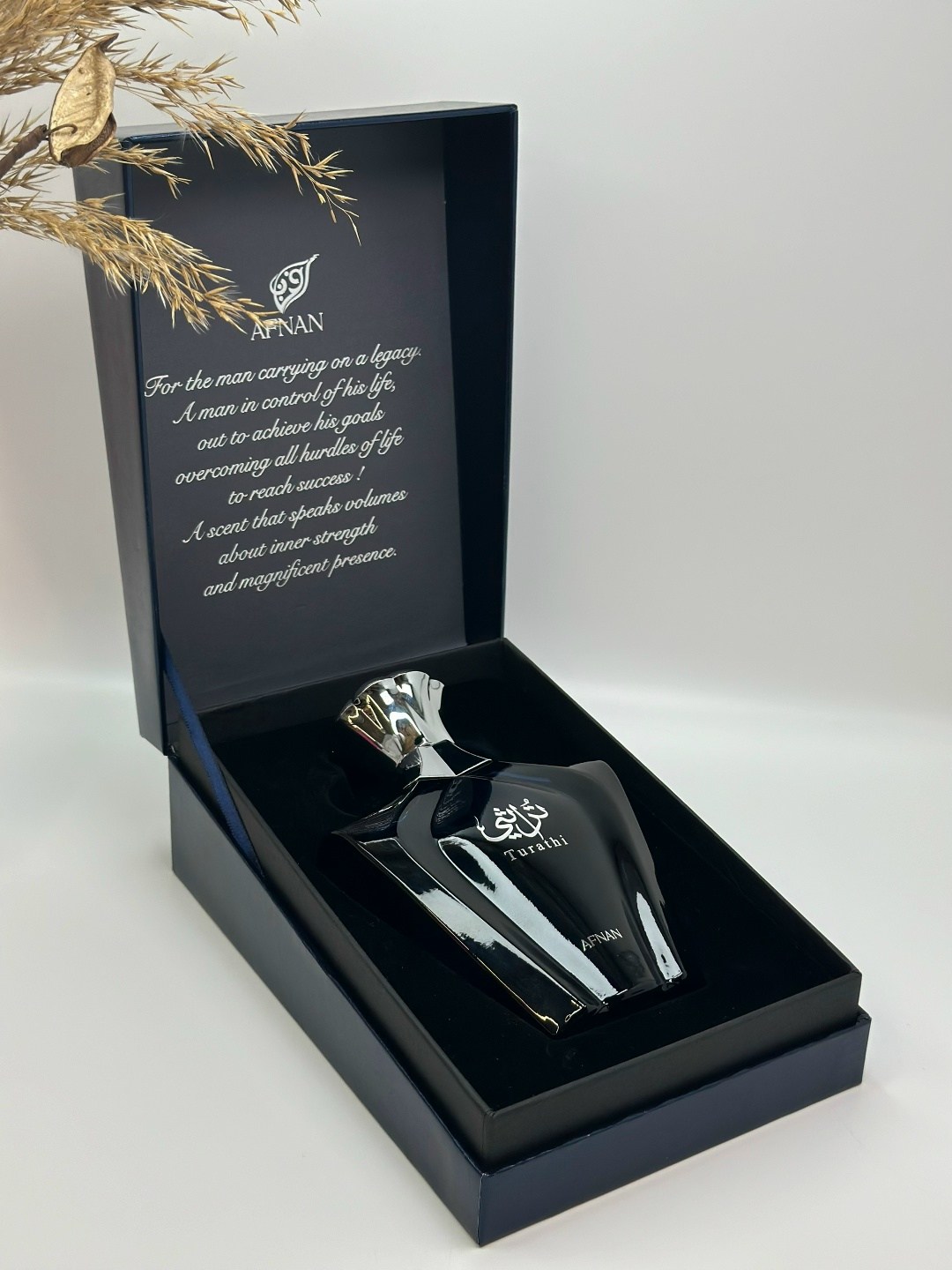 Аромат turathi blue стартует яркой игристой свежестью цитрусовых нот, которая мягко перетекает в тепло древесных нот и солоновато-смолистые оттенки амбры А завершает звучание парфюма afnan turathi blue теплая, чуть землистая пряность листьев пачули, харизматичный мускус и волнующий запах свежих пряностей.